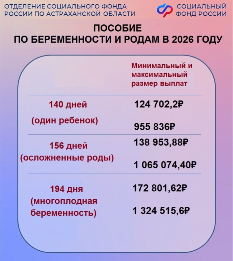 С 2026 года Отделение СФР по Астраханской области выплачивает «декретные» пособия в повышенном размере